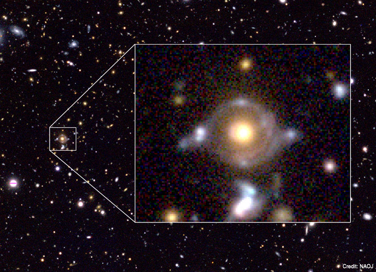 Школьники из Японии открыли "глаз Гора" - одну из самых больших гравитационных линз – искривлений пространства-времени. Исследователи совершили открытие во время изучения фотографий галактик, которые были получены с помощью телескопа "Субару". О результатах исследования сообщается на сайте Национальной астрономической обсерватории Японии.