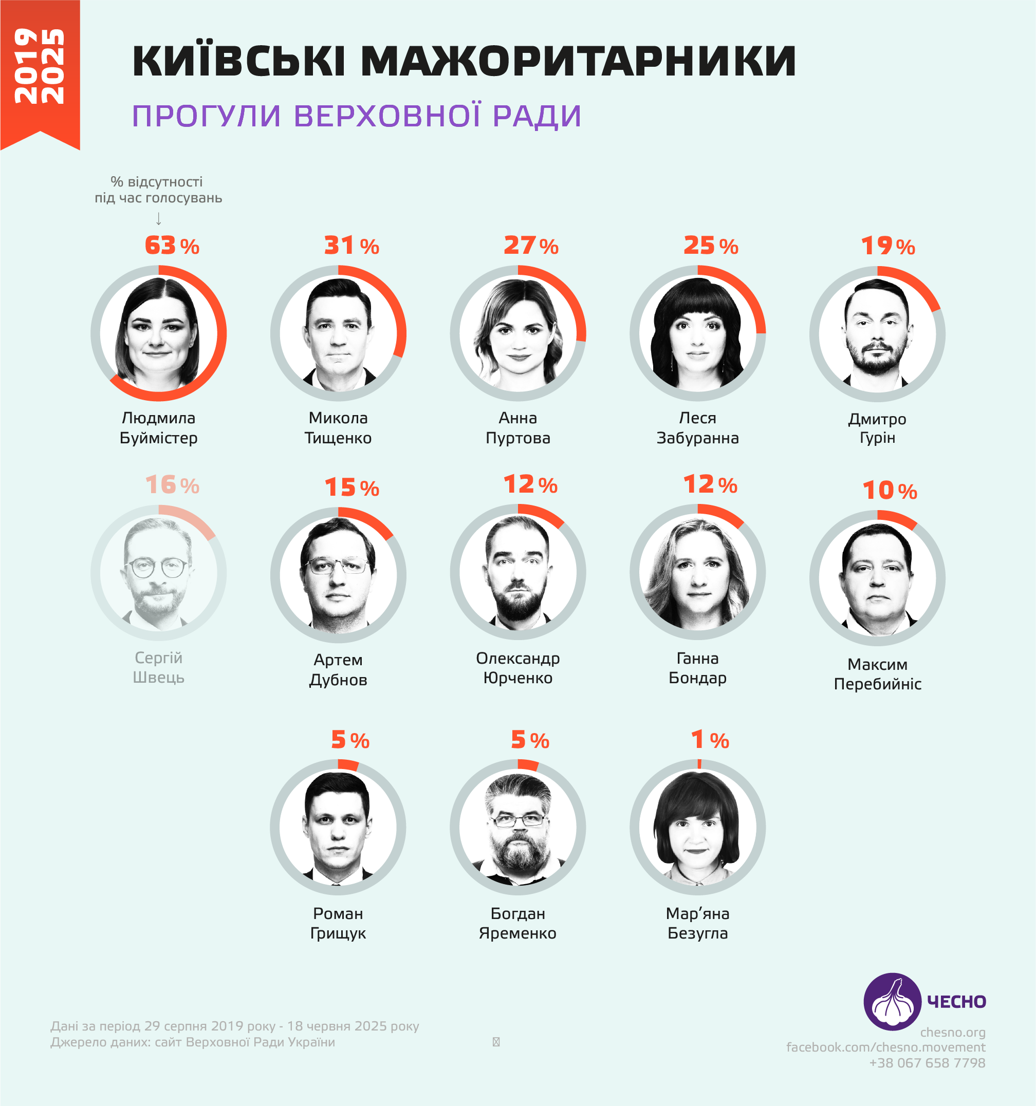 Нардеп полгода провел под круглосуточным домашним арестом и из-за этого не ходил в парламент. В целом, с 2019 года Тищенко пропустил 31% голосований. В 2025-м ему смягчили меру пресечения, оставив только ночной домашний арест, поэтому нардеп начал снова появляться под куполом Рады.