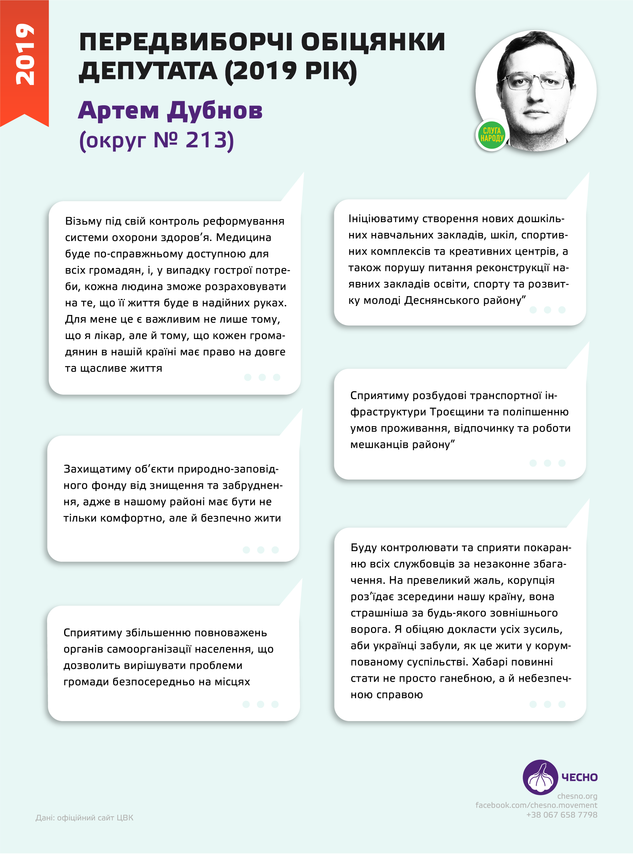 Артем Дубнов был избран в Раду по округу в Деснянском районе. Он также входит в политический совет «Слуги народа».