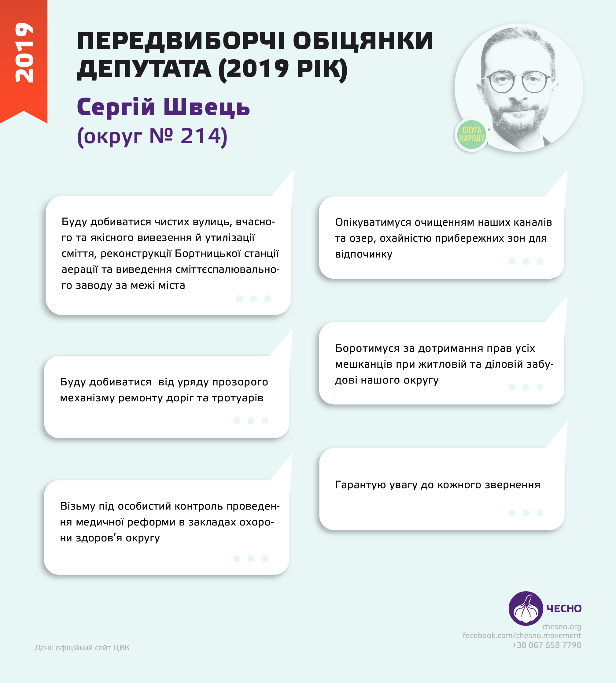 Избирательный округ, охватывающий часть Днепровского района, с недавних пор остался без своего представителя в парламенте — в конце мая 2025 года избранный от «Слуги народа» Сергей Швец умер после тяжелой болезни. В Раде депутат работал в комитете по вопросам свободы слова, что продлило его профессиональный путь в журналистике.
