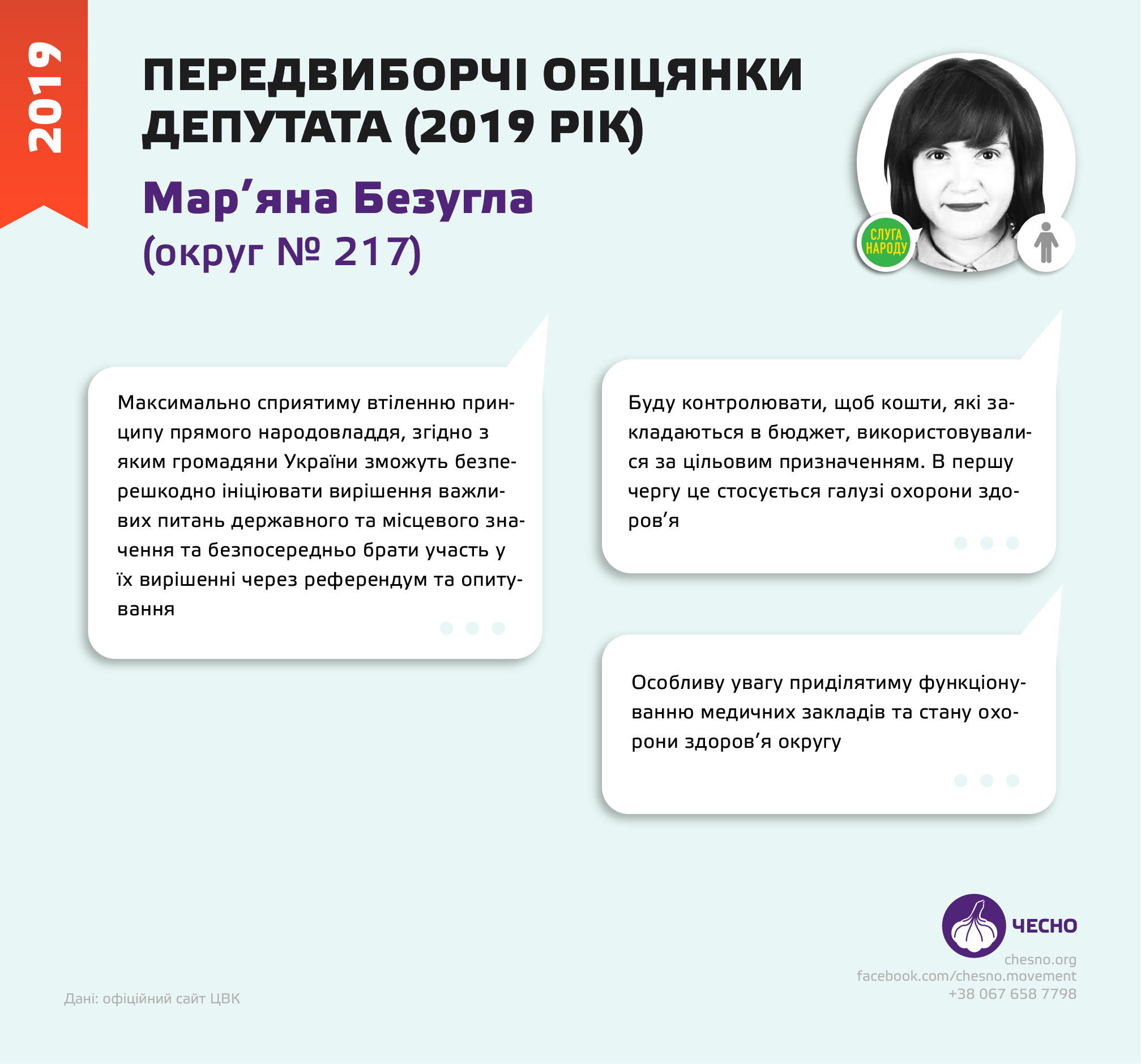 В то же время в Раде Безуглая продолжает работать активно: по итогам анализа, у депутата всего 1% прогулов, а за годы работы в парламенте она подала больше всего инициатив среди столичных мажоритарщиков — 531. Каждая третья из них стала действующим актом, что считается одним из самых высоких показателей среди депутатов.