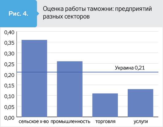 Оценки работы таможни зависят от вида внешнеэкономической деятельности, отрасли, размера предприятий и региона их расположения. Экспортеры оценивают работу таможни лучше, чем импортеры. Так, 35% предприятий-экспортеров считают, что работа таможни эффективная, и ничего менять не нужно. Тогда как среди импортеров таких лишь 13%.