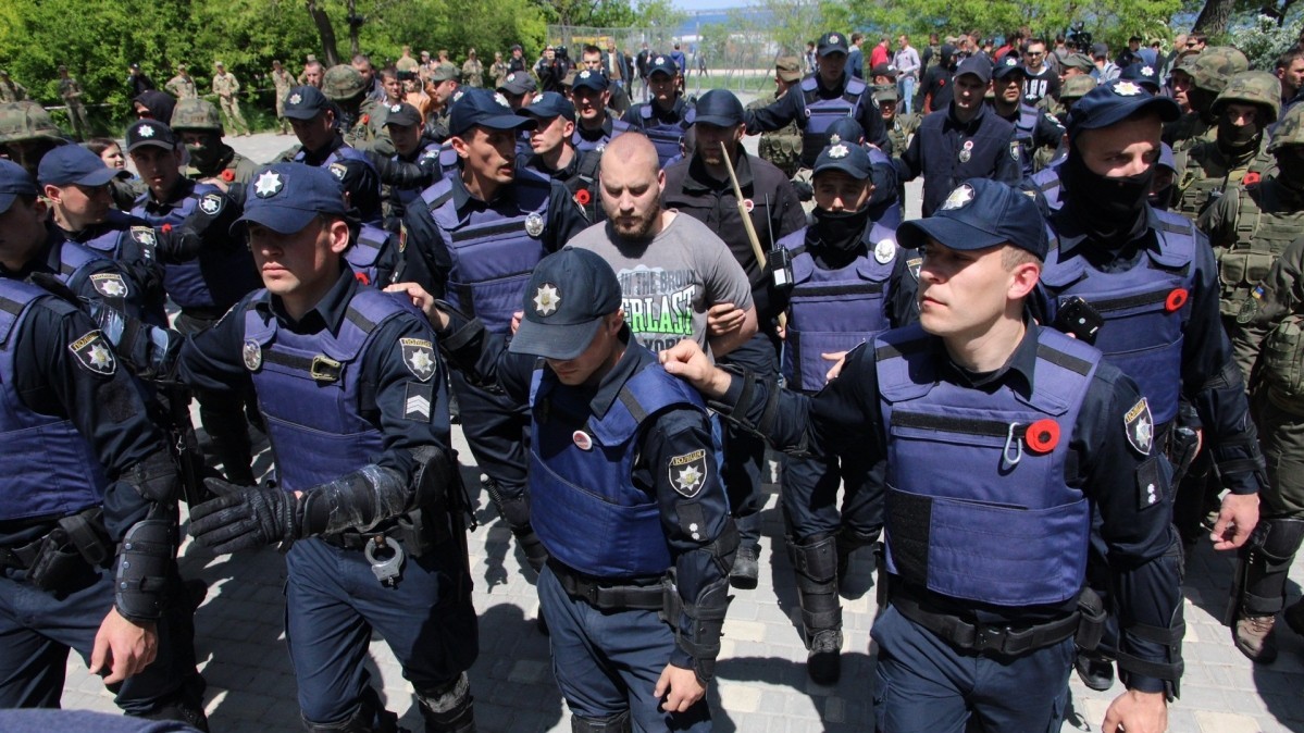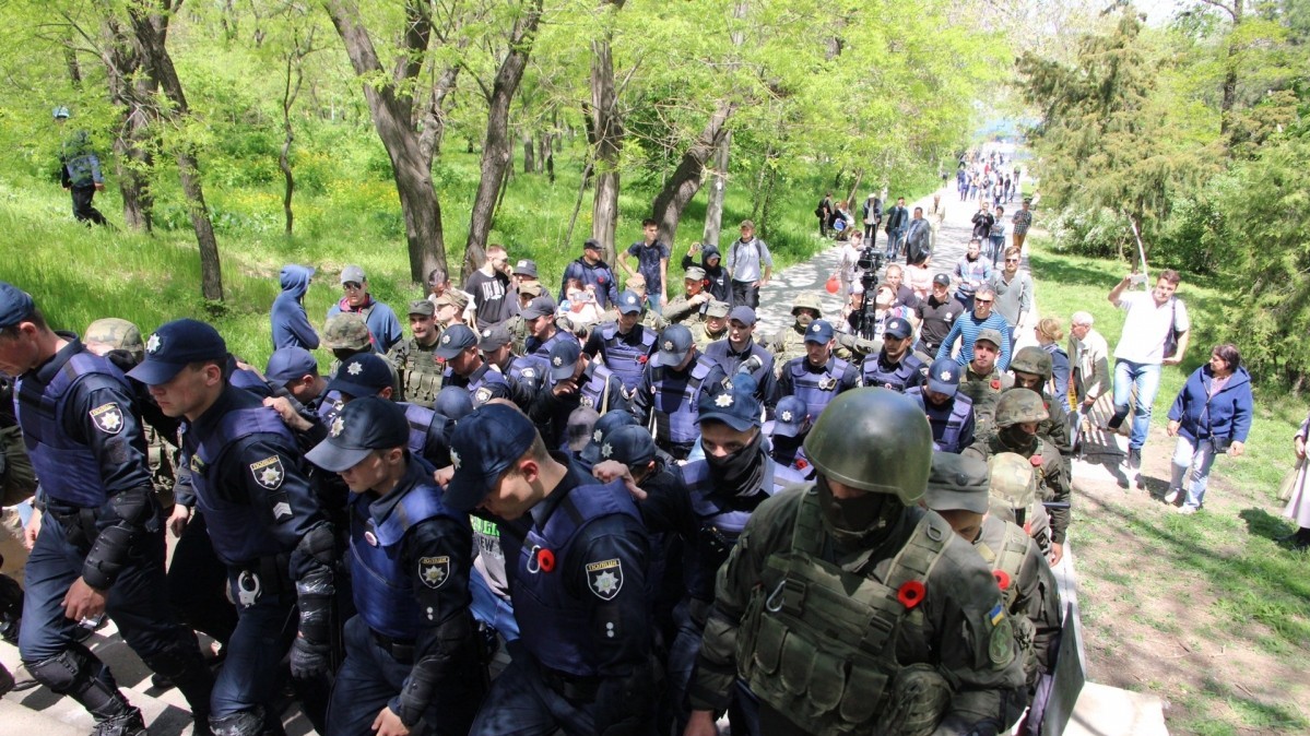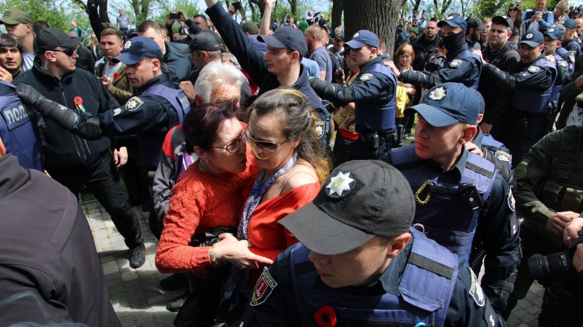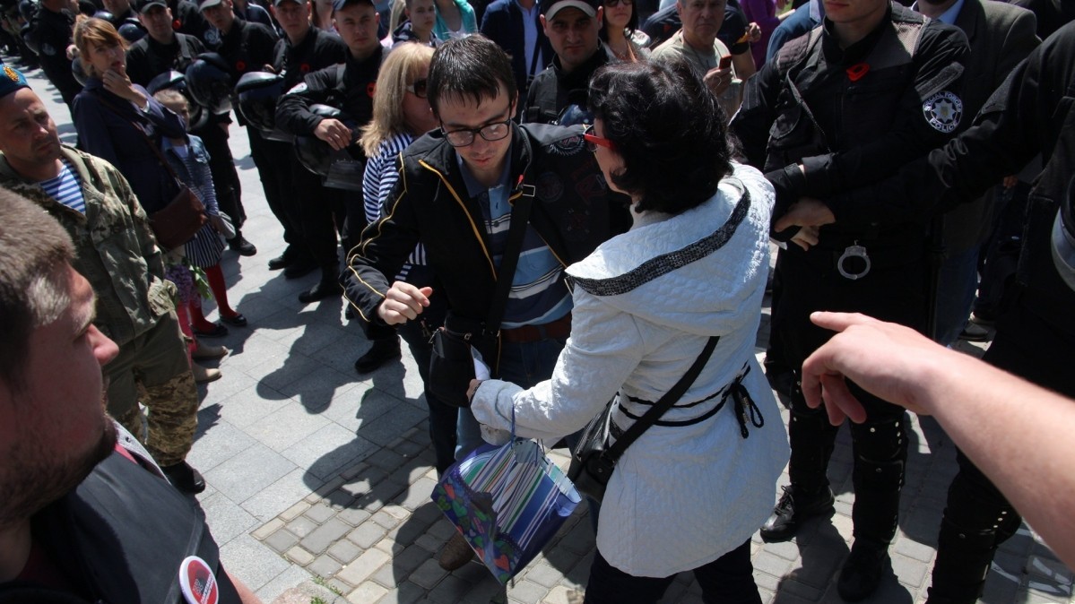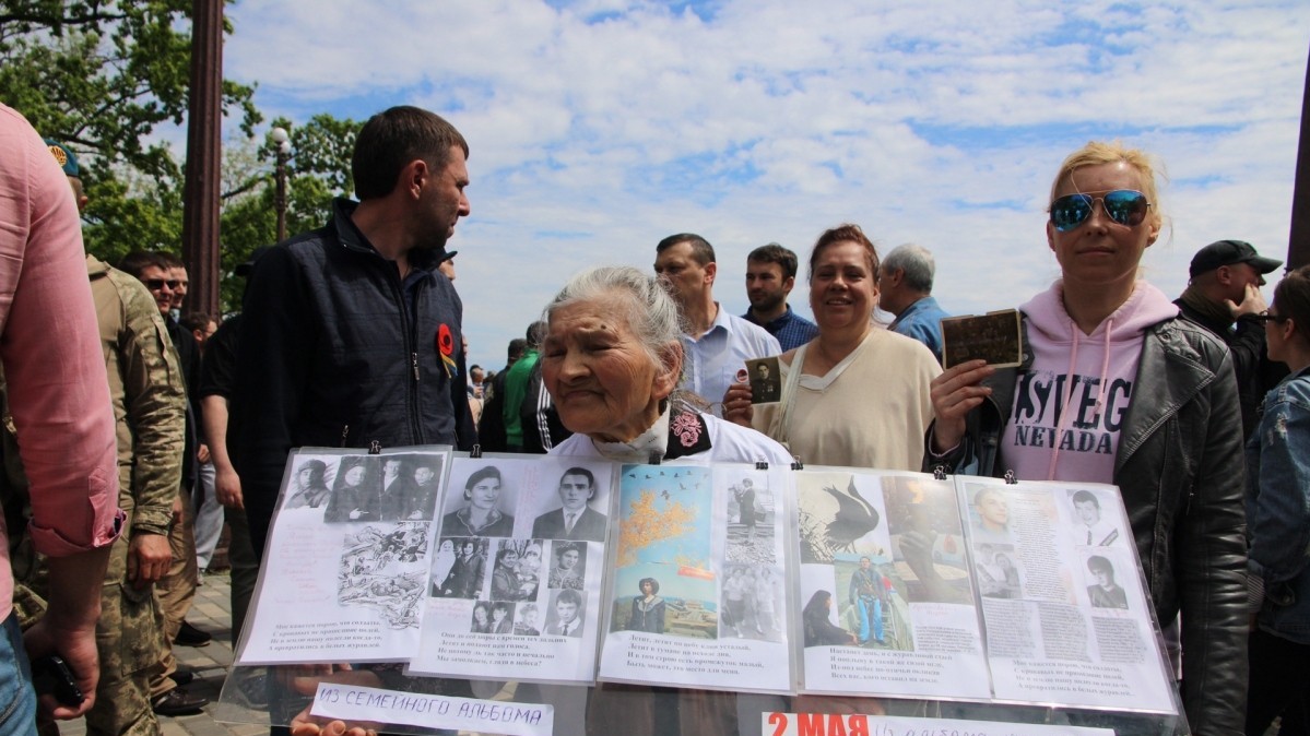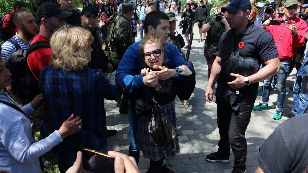 Позже на Аллее Славы появились люди с портретами и советской символикой. Во время акции "Бессмертный полк", в которой приняли участие не менее тысячи человек, произошло несколько отдельных инцидентов: словесных споров, переросших в потасовку между проукраинскими и пророссийскими активистами. Сообщается, что "скорая помощь" забрала одну женщину, которой стало плохо во время акции, но в потасовках она не участвовала. Полиция старалась разделить кордоном участников акции друг от друга. 20 человек были задержаны.