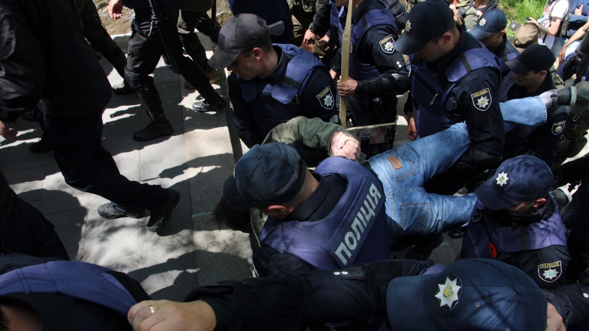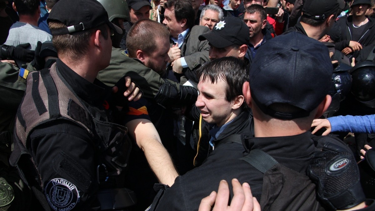 Представители патриотических организаций отбили у "куликовцев" флаг с изображением горящего Дома профсоюзов, который те принесли к памятнику Неизвестному матросу. Завязалась небольшая драка, в которой никто серьезно не пострадал.