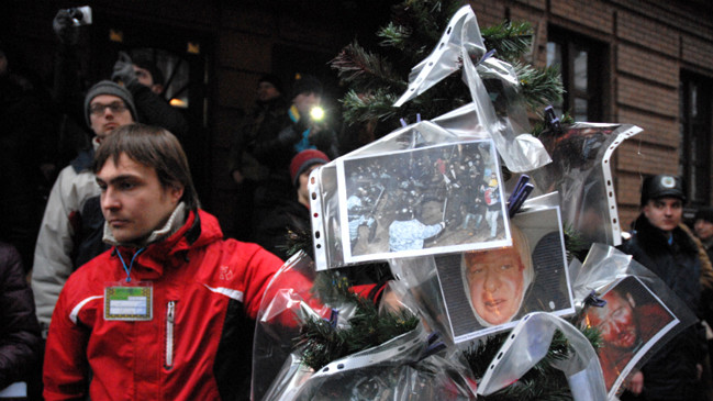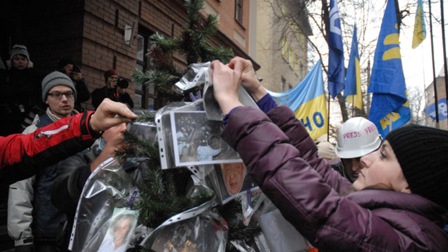 Дерево украсили фотографиями всех пострадавших участников от разгона Евромайдана в ночь на 30 ноября.