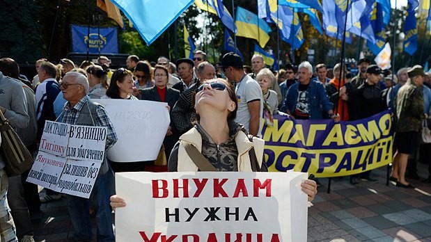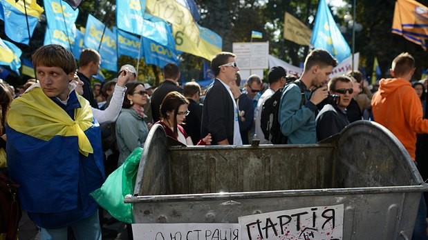 "Никакая ратификация Соглашения об ассоциации между Украиной и Европарламентом не затмит собой необходимость принятия закона о люстрации, и покрышки мы принесли для того, чтобы если депутаты не проголосуют за закон о люстрации, мы покажем им, что такое люстрация от народа", – заявил со сцены один из активистов.