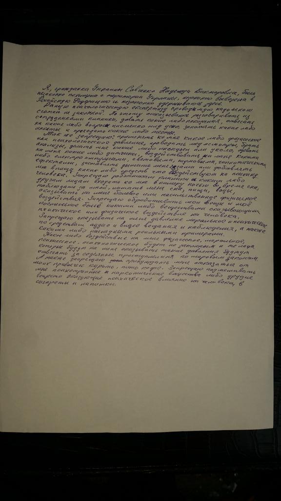 Напомним, Надежда Савченко находится в следственном изоляторе Воронежа с июля, когда она была похищена боевиками в Луганской области и вывезена в Россию. !zn