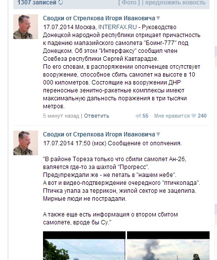 Активные пользователи соцсетей проводят очевидные параллели данной трагедии с катастрофой малазийского Боинга 17 июля, когда боевики сначала сообщили о нападении на украинский самолет ВСУ, а после обнародования информации о многочисленных мирных жертвах, отказались от своих слов и обвинили во всем украинскую сторону.