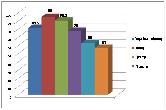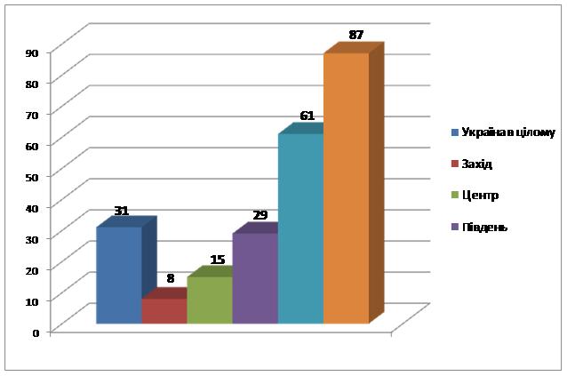 Доверие к украинского телевидения по регионам, в%)