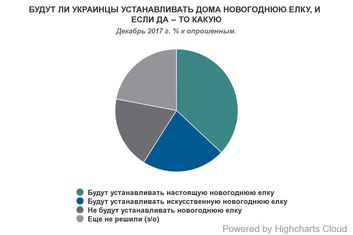 Не намерены устанавливать в этом году новогоднюю елку 19% жителей Украины, а еще 22% пока не определились в данном вопросе.