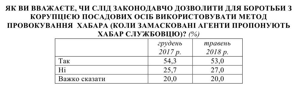 Большинство граждан Украины (53%) поддерживает такой метод борьбы с коррупцией, как предложение взятки чиновникам от специальных агентов, против высказались 27%, а 20% респондентов не смогли определиться, свидетельствуют данные опроса фонда "Демократические инициативы" и Центра Разумкова.