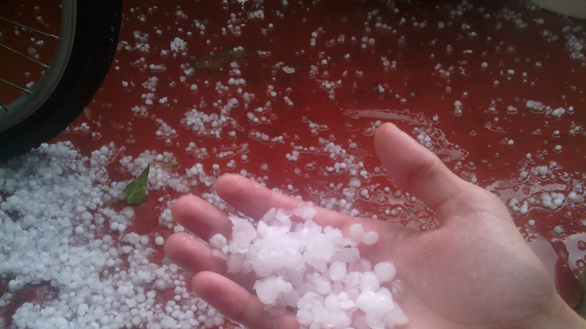 Жители города рассказывают, что обычный летний дождь за несколько минут превратился в ливень, а уже потом начал падать град, величиной с копеечную монету.
