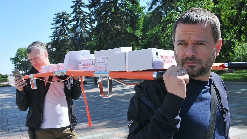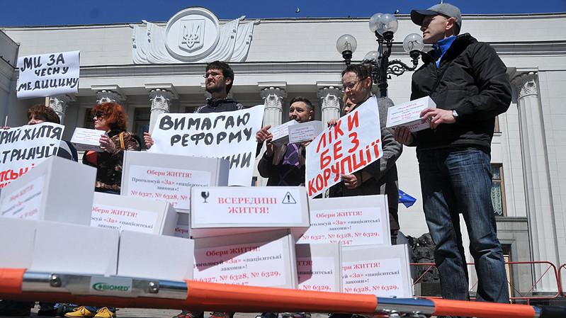 Около сотни активистов пациентских организаций принесли под Верховную Раду 423 "упаковки жизни", продемонстрировав таким образом необходимость скорейшего проведения комплексной реформы здравоохранения.