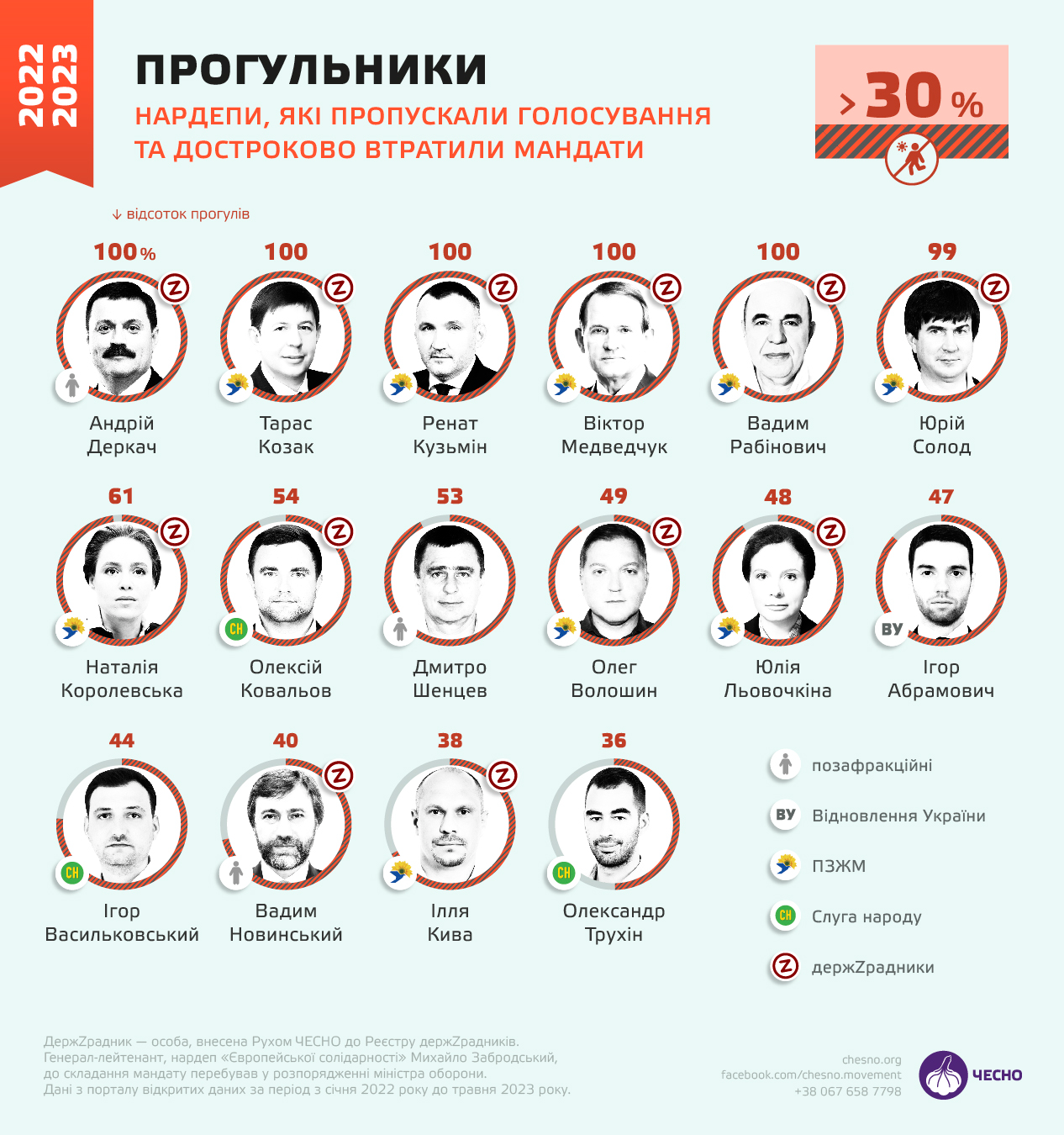 В свою очередь Движение ЧЕСНО постоянно мониторит присутствие народных депутатов на заседаниях, и руководство Верховной Рады и фракции «Слуга народа» владеет информацией обо всех, кто сбежал и не посещает заседания. Но, как подчеркнула Федорив, реакция возможна только после медиаскандала, и не факт, что после него нардеп напишет заявление о составлении мандата.