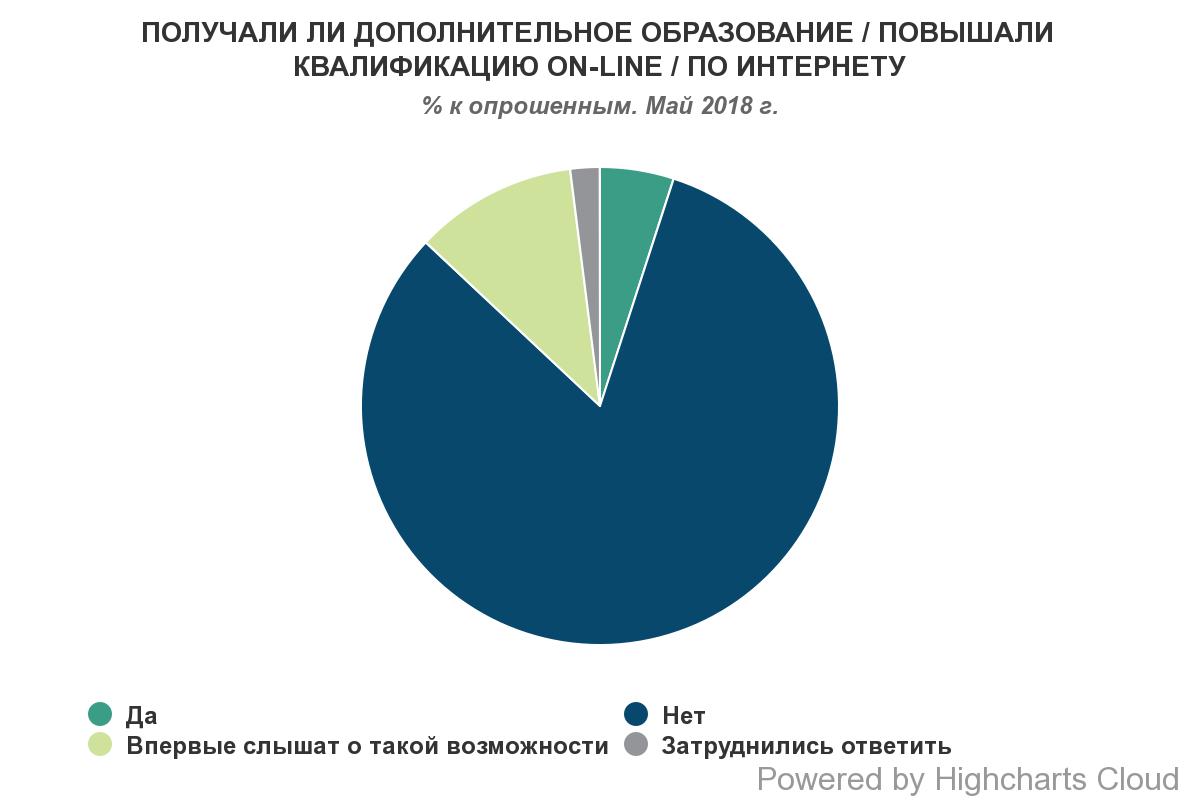 В настоящее время уже воспользовались возможностями получения дополнительного образования или повышения квалификации on-line по Интернету пока всего 5% жителей Украины, свидетельствуют данные опроса компании Research & Branding Group.
