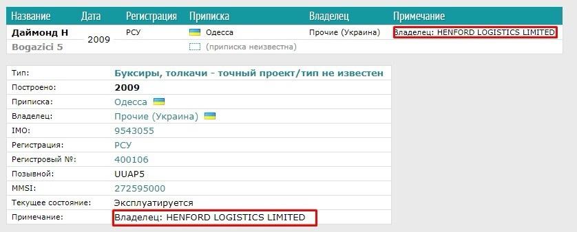 Чиновники утверждают, что буксиры приписаны в Гонконге в собственности у компании Henford Logistics Ltd. В то же время СМИ провели расследование и доказали, что конечный владелец буксиров – Российская Федерация. Журналисты выяснили, что еще в 2010 году ОАО “Флот НМТП”, который входит в группу компаний “Новороссийский морской торговый порт” приобрело 80% акций китайского пароходства Henford Logistics Ltd, который базируется в Гонконге.