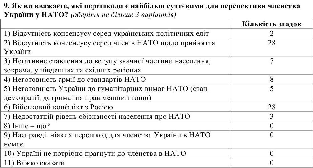 Для вступления Украины в НАТО существуют две основные преграды: военный конфликт с Россией и отсутствие консенсуса среди членов НАТО относительно принятия Украины. Другие причины, по мнению экспертов, не являются такими вескими.
