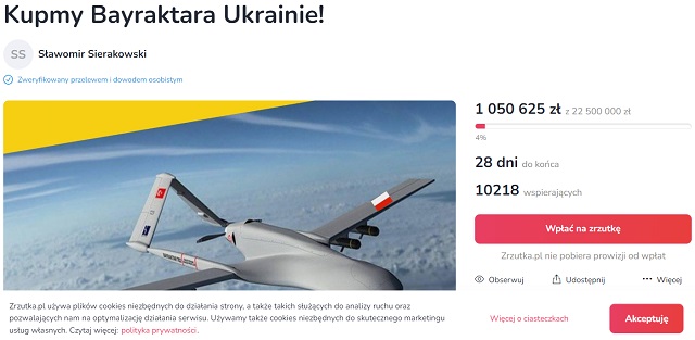 «Деньги литовцы собрали в кратчайшие сроки, и производящая их компания решила передать один Украине, а собранные средства использовать для помощи населению. Позже то же самое произошло со следующими тремя подборами! Нам пора!, – написал Славомир Сераковский. – "Байракторы" исключительно эффективны в этой войне, и именно благодаря им украинцам удалось защитить Киев. Но у украинцев истекает время».