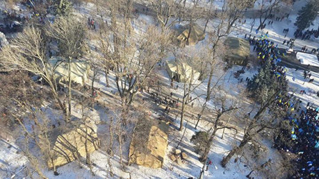 Вместе с тем очевидцы сообщают, что на станции метро "Академгородок" была замечена палатка с надписью "Районный мобилизационный центр Евромайдана" в окружении не менее 50 автобусов с "гостями Киева" характерной внешности.