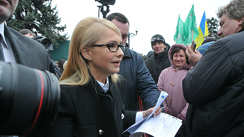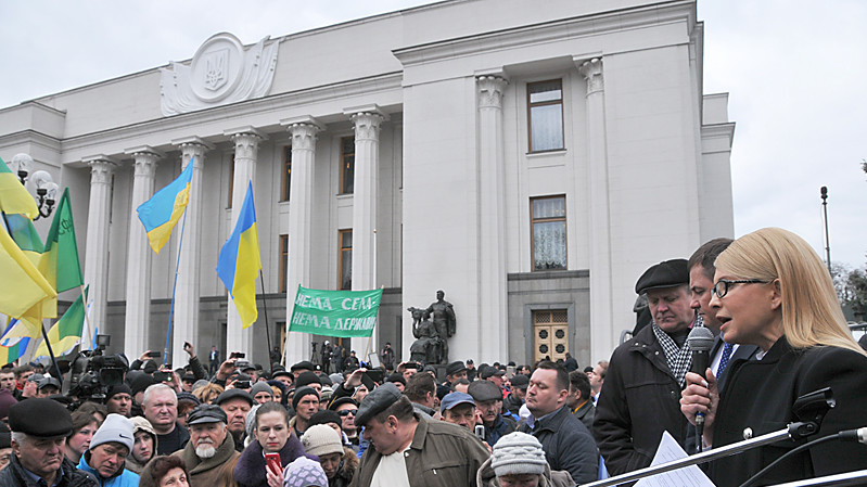 У многих были плакаты с надписью "Нет налоговому геноциду аграриев", "Не делайте из селян нищих", "Земля не товар" и др. Протестующие перекрывали проезжую часть улицы Грушевского. К митингующим выходила Юлия Тимошенко.