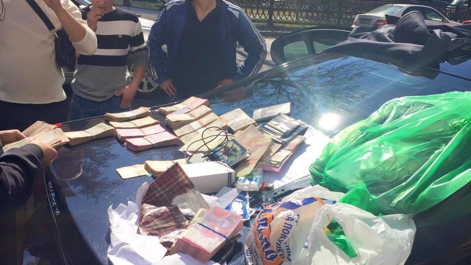 Как сообщает пресс-центр СБУ, "сотрудники спецслужбы задержали чиновника в служебном автомобиле в центре Киева во время получения взятки в размере 622 тысяч гривень".