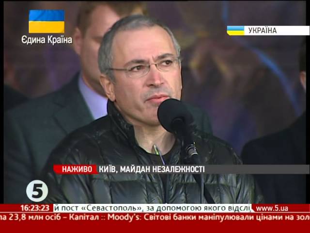 Бывший глава ЮКОСа, в частности заявил, что российские власти поощряли силовые действия украинской милиции против протестующих на улицах Киева. Также Ходорковский обвинил во лжи федеральные российские телеканалы, по версии которых, по Киеву ходят неуправляемые вооруженные банды, состоящие из украинских националистов.