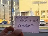 Проект "Желтая лента" опубликовал фото украинцев из разных городов Украины, которые сейчас находятся в оккупации, на которых люди поздравляют друг друга с Днем Независимости.