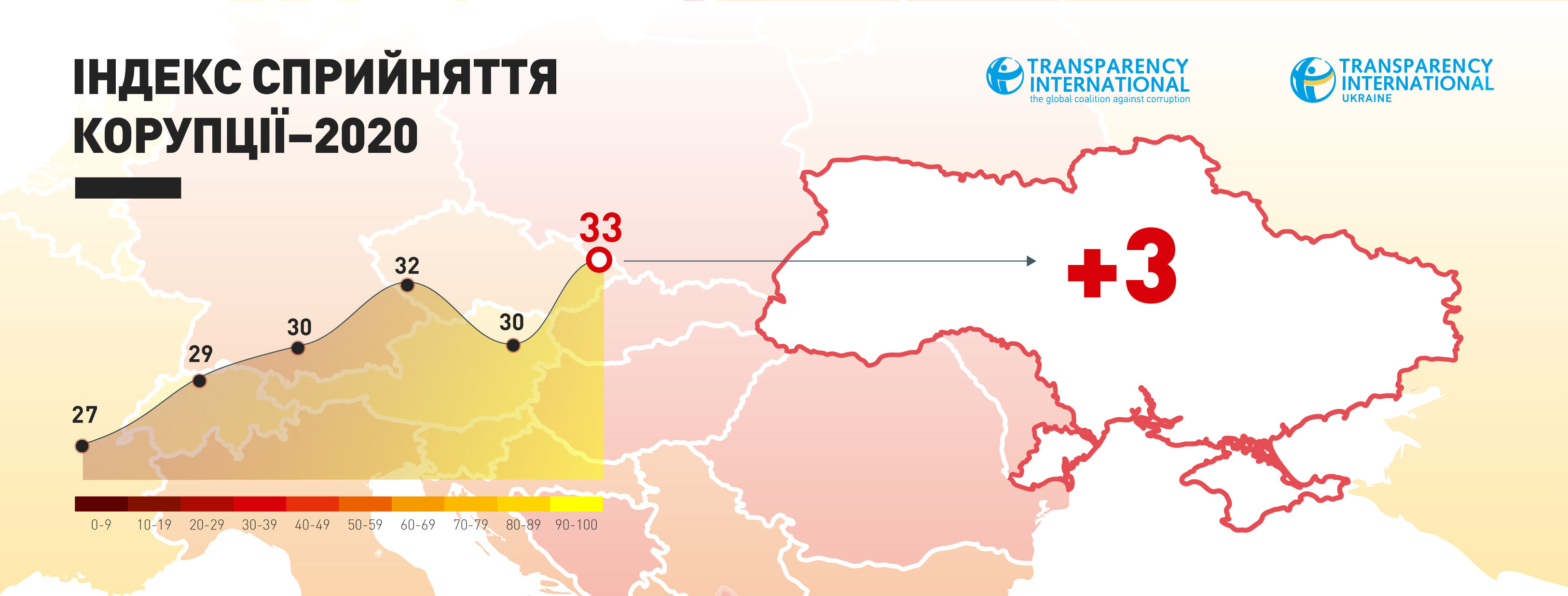 В течение 2020 году Украина в новом «Индексе восприятия коррупции» набрала три очка и с 33 баллами (из 100 возможных) заняла 117 место среди 180 стран. Об этом сообщили в Transparency International Ukraine.