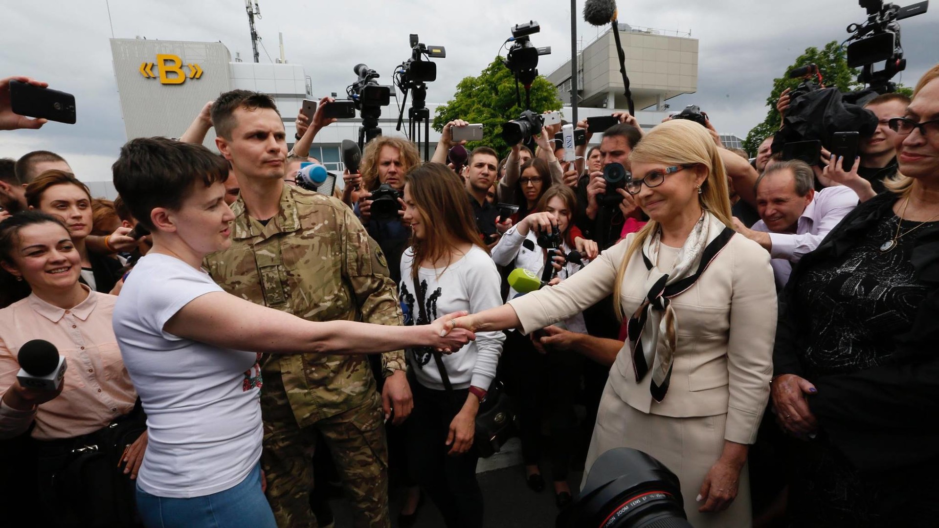 В зал прибытия официальных делегаций приехали ее мама и сестра, а также лидер "Батькивщины" Юлия Тимошенко. Впрочем, как пишут очевидцы, летчица отказалась принять от Тимошенко цветы.