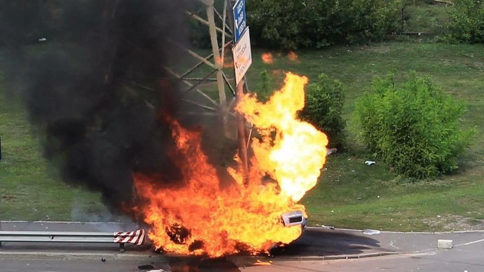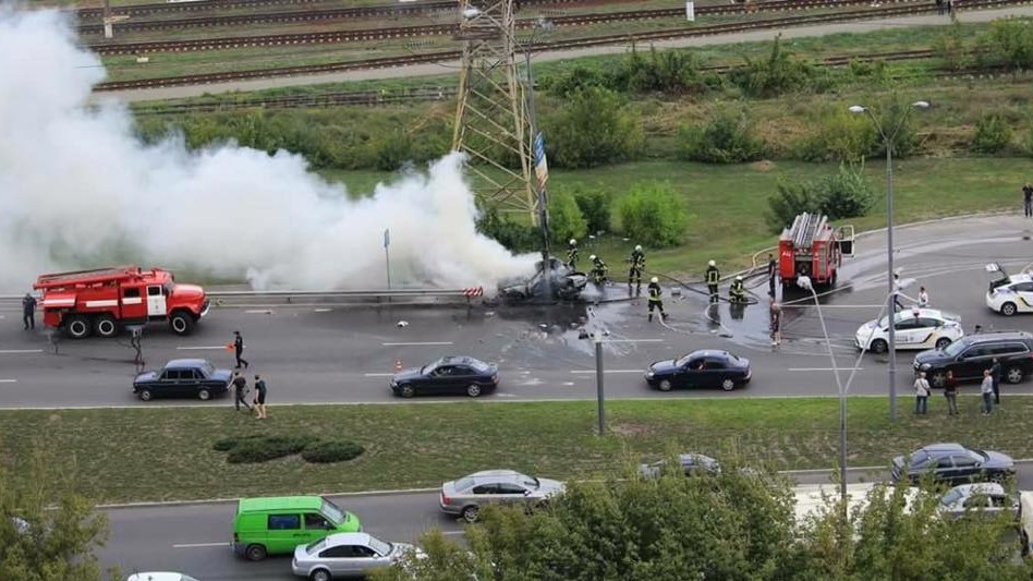 В Голосеевском районе Киева 4 сентября произошло ДТП, сопровождавшееся взрывом и пожаром. Легковой Opel после столкновения с Toyota вылетел с трассы и на большой скорости врезался в фонарный столб на улице Саперно-Слободской, передает dtp.kiev.ua.