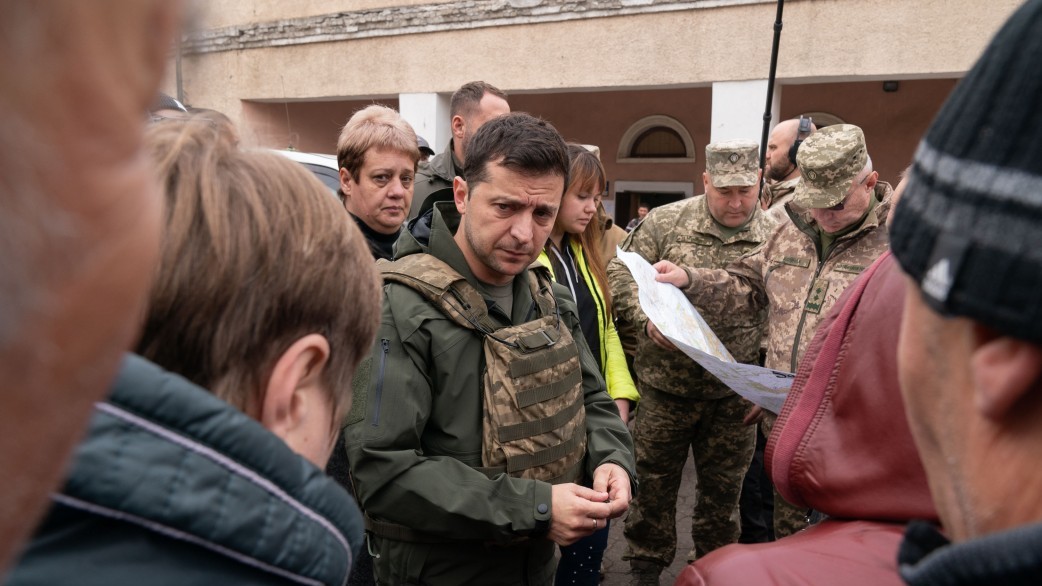 Президент Украины Владимир Зеленский посетил Золотое Луганской области, где встретился с местными жителями и военнослужащими на передовой.