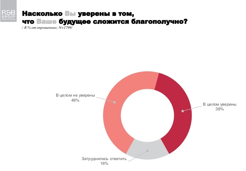 Однако, отвечая на вопрос об уверенности, насколько благополучно сложится их будущее, 38% респондентов заявили, что уверены в благополучном будущем, а 46% - не уверены. Затруднились ответить – 16%.