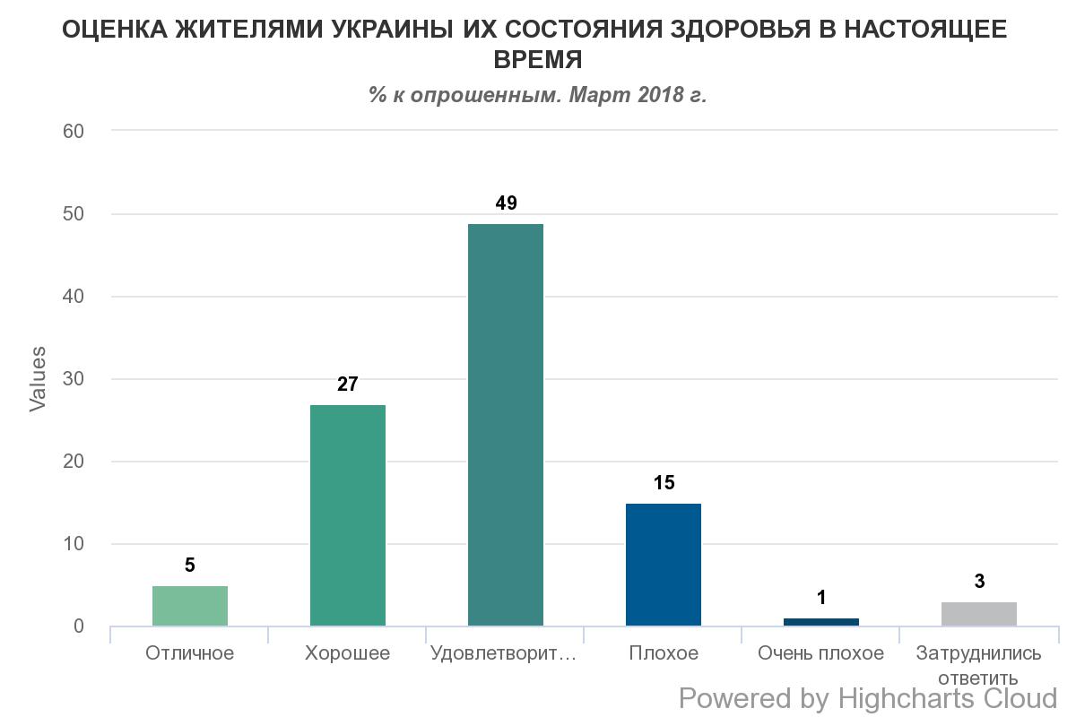 В сравнении с 2011 годом число украинцев, оценивающих свое состояние здоровья как удовлетворительное, увеличилось на 9%.