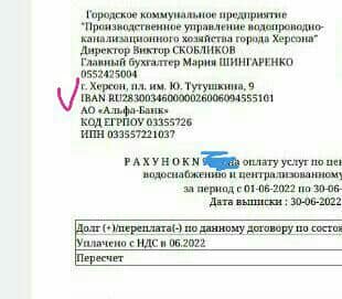 Оккупационные "власти" Херсонщины утвердили новые тарифы на энергоносители и коммунальные услуги в рублях. Поэтому херсонцы получили новые счета от Херсонводоконала вместе с реквизитами, по которым следует перечислять средства.