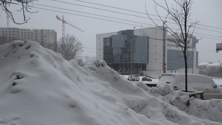 Киев опять засыпает снегом, власть попросила горожан оставаться дома