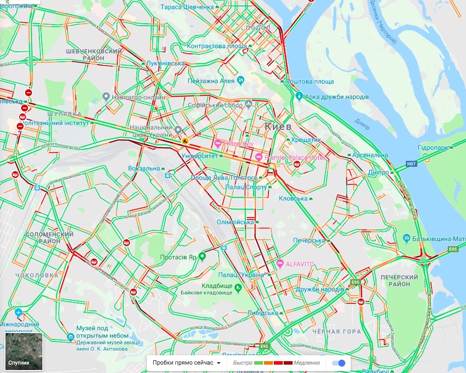 В направлении правого берега возникли заторы на Северном мосту, мосту Метро и мосту Патона. На подъездах к Южному путепроводу, проспектах Бажана, Ватутина и Броварском тоже образовались пробки.