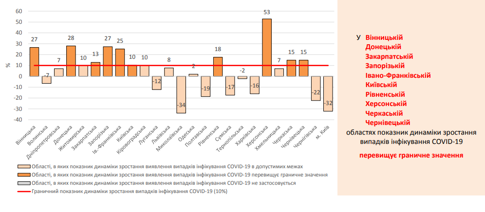 Показатель динамики роста случаев COVID-19 в Киевской области за двухнедельный период составил 10%.