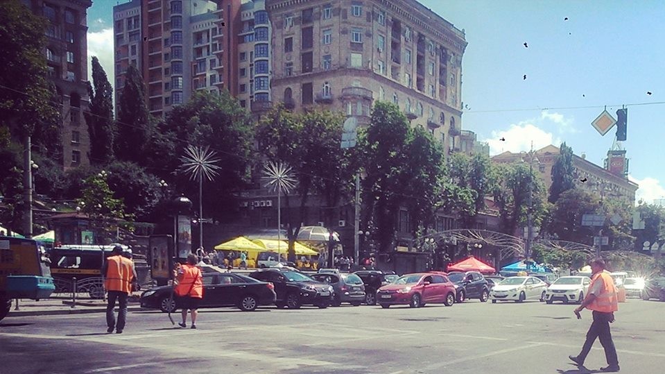 Баррикаду из бетонных блоков они переместили на перекресток Прорезной и Крещатика.