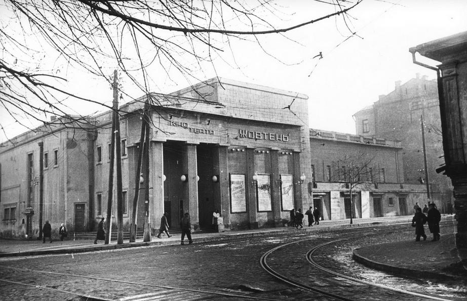 "Жовтень" - старейший кинотеатр города, первый построенный после революции, открылся 8 ноября 1930 года под названием "Девятое Госкино" на углу ул. Шолом-Алейхема и Щекавицкой.