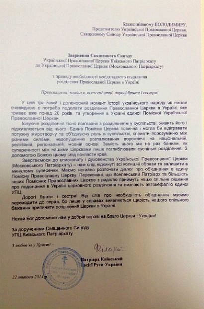 "Это не первое обращение УПЦ КП к нам. Как и мы множество раз предлагали УПЦ КП вернуться в лоно церкви, из которого они вышли. В ближайшее время мы огласим нашу позицию по этому вопросу", - сказал представитель УПЦ МП протоиерей Георгий Коваленко. !zn