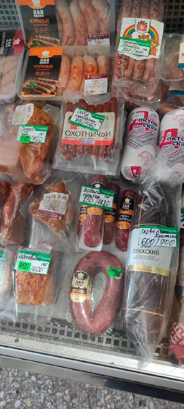 Дороже всего в Мариуполе стоят мясные изделия – колбасы, сосиски, сардельки. Так, за 1 кг колбасы «Сервелат» придется заплатить от 600 до 850 грн, охотничьих колбасок – 710 гривен. Копченая куриная грудка стоит 510 грн за 1 кг, сосиски – 260 грн за килограмм.