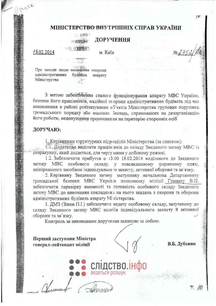 "Впрочем, вряд ли это правда. В распоряжении журналистов "Слидства.Инфо" есть копия поручения от 18 февраля, которым Гриняка назначили руководителем сводного отряда МВД", - отмечается в материале.
