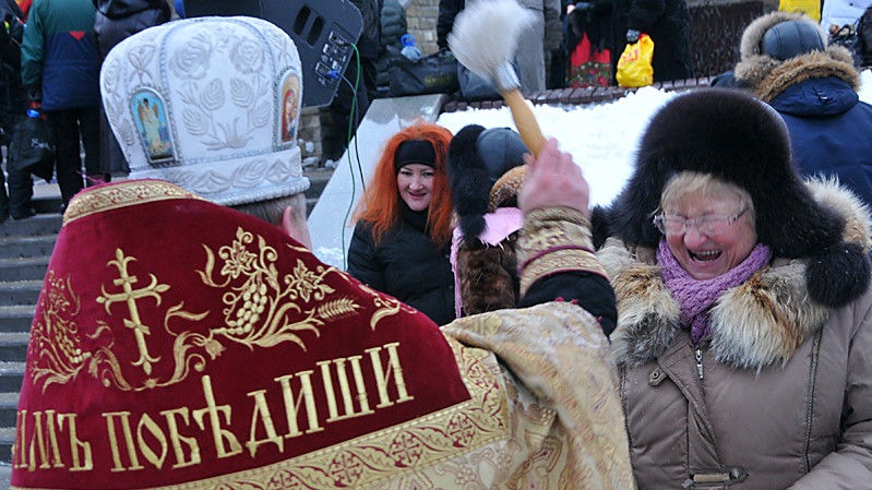 В Киеве 19 января православные христиане празднуют Крещение с раннего утра. Еще до рассвета желающие искупаться в ледяной воде начали собираться у Днепра.