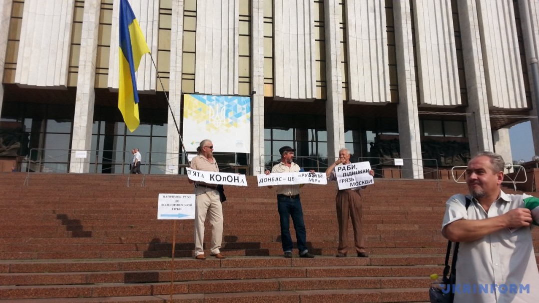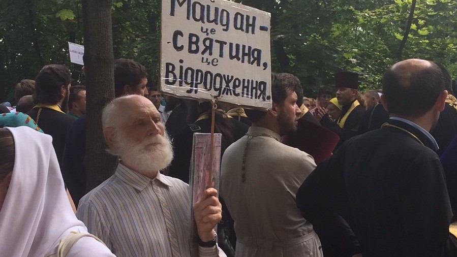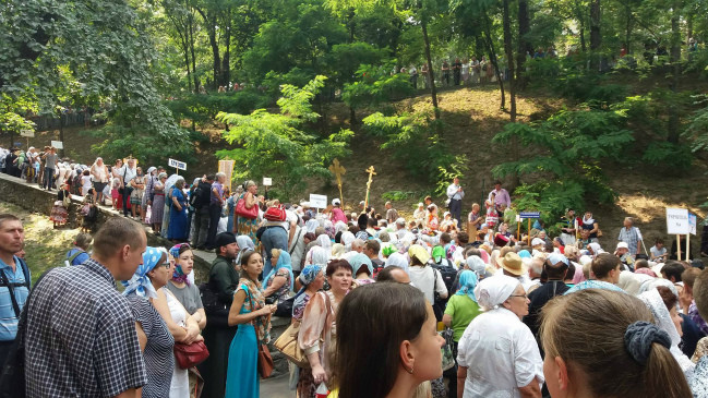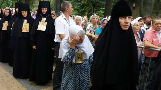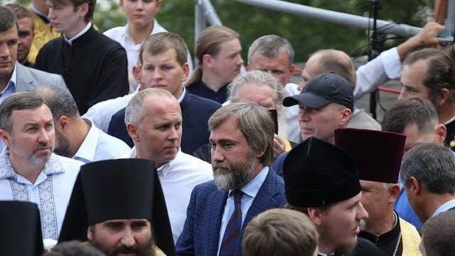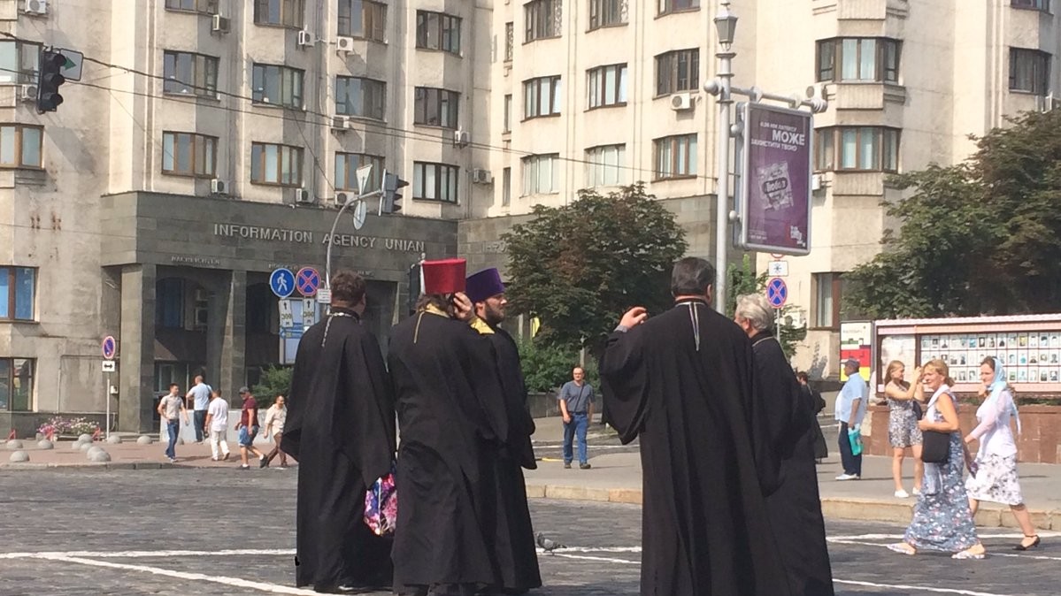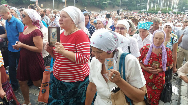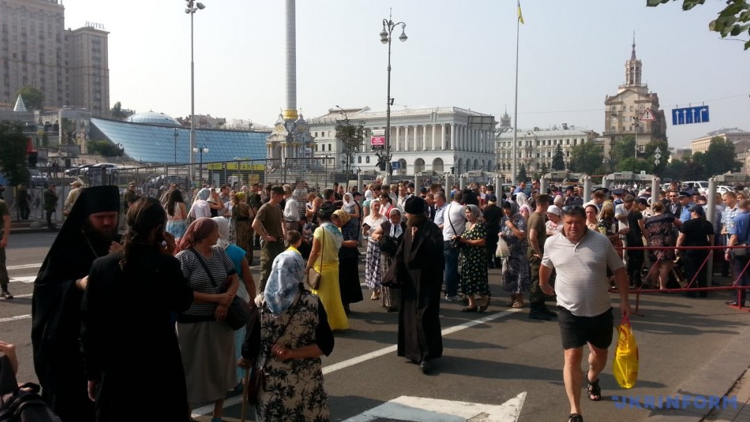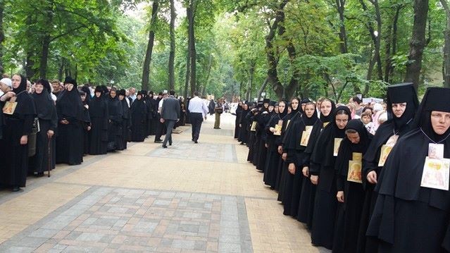 Молебен возле памятника св.Владимира на Владимирской горке в Киеве начался около 13:00 дня. К участию были допущены лишь верующие, пришедшие в колоннах крестного хода с Востока и Запада. Среди верующих замечены депутаты "Оппозиционного блока" Юрий Бойко, Вадим Новинский, Нестор Шуфрич, Евгений Геллер.