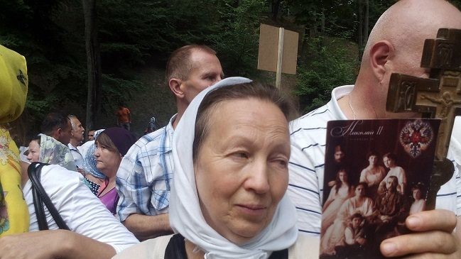 Прихожане московского патриархата, пришедшие на Владимирской горку, принесли с собой иконы царской семьи.