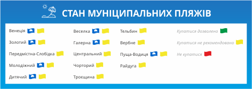 По состоянию на 5 августа в воде на пляжах "Венеция", "Веселка", "Детский", "Золотой", "Молодежный", "Предмостная Слободка", "Радуга", "Тельбин", "Центральный", "Троещина" и "Черторой" превышен индекс лактозопозитивной кишечной палочки (ЛКП).