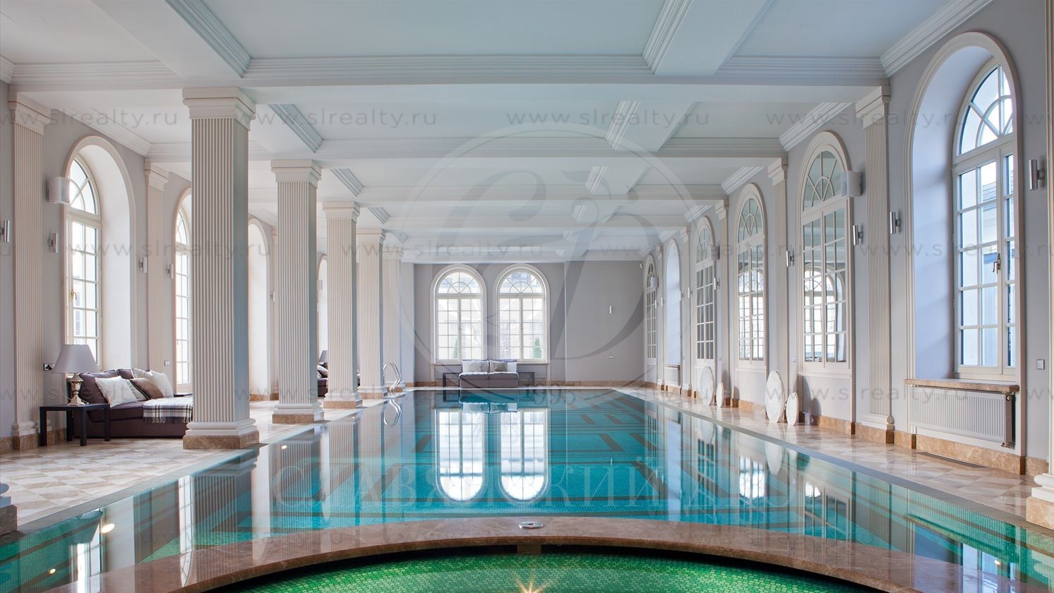 В доме Сергея Курченко есть дегустационная комната и винный погреб, гостиная с камином, музыкальная гостиная, парадная кухня-столовая и поварская кухня и бассейн с зоной спа и тренажерными залами. В нем также имеется гараж на четыре машины. В особняке пять спален (некоторые из них с каминами), шесть ванных комнат, домашний кинотеатр с холлом и баром, несколько лифтов, и многое другое. При этом на сайте агентства элитной недвижимости "Славянский двор" дом указан как продающийся, хотя на самом деле он уже давно куплен Курченко, и эту информацию изданию подтвердили в агентстве.