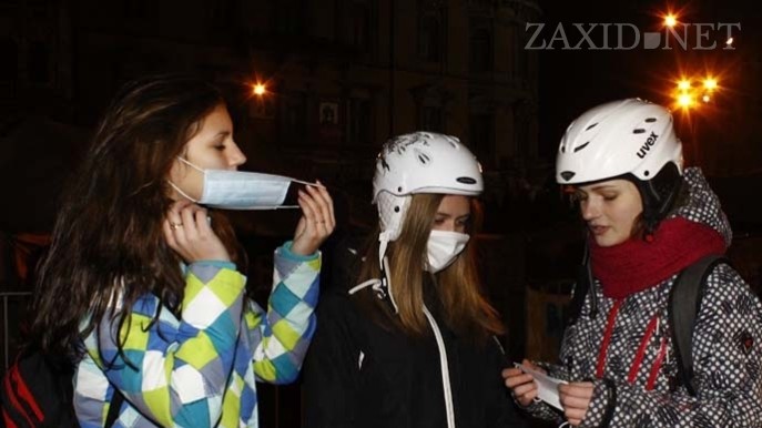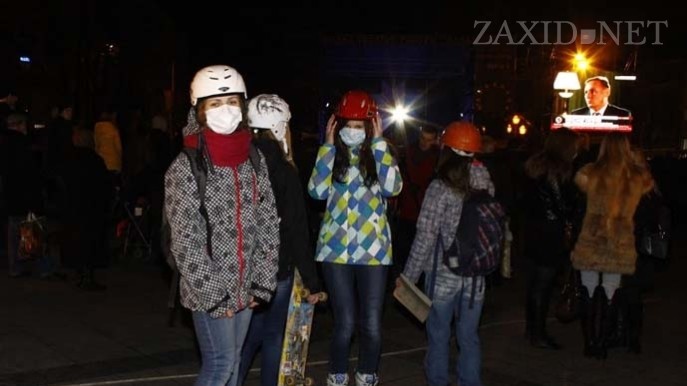 Представители львовского Евромайдана провели "народное вече касок и марлевых повязок". Таким образом активисты решили выступить против принятого парламентом закона Олийныка – Колесниченко, который уже подписал президент Виктор Янукович.