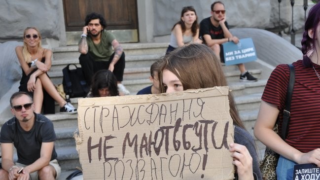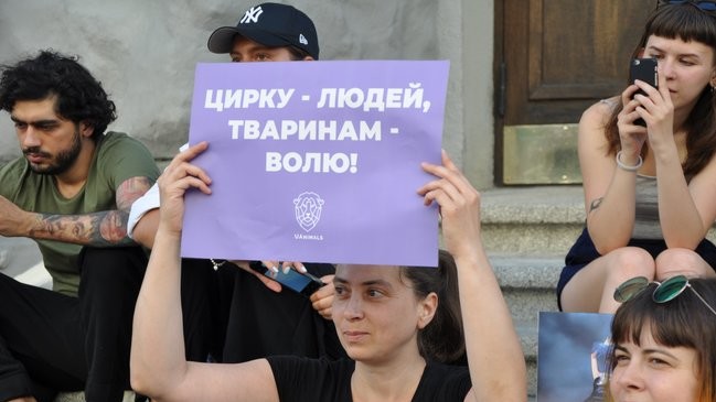 Под Администрацией президента в воскресенье, 16 июня, прошла акция против эксплуатации животных в цирках. Ее участники пытались привлечь внимание к проблеме жестокого обращения с животными во время дрессуры и невозможности соблюдать санитарные нормы их содержания даже в стационарных цирках.