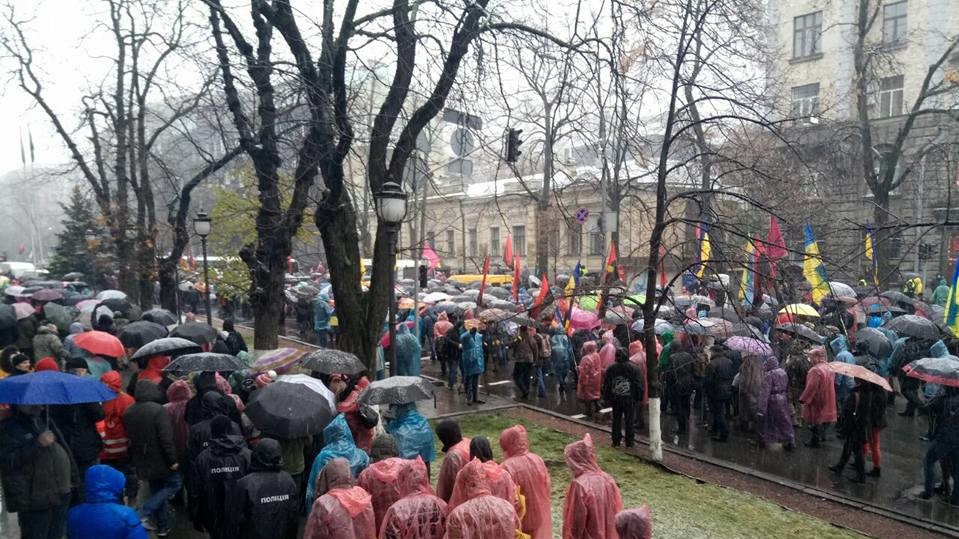 Во главе марша народные депутаты Сергей Лещенко (фракция БПП), Юрий Деревянко и Юрий Левченко (внефракционные). Митингующие намеревались пройти по центру Киева от Михайловской площади и выйти к палаточному городку протестующих у здания парламента, на улице Грушевской. А Михеил Саакашвили анонсировал новые требования к власти.